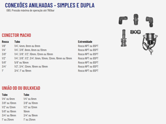 As conexões anilhadas são amplamente utilizadas em sistemas hidráulicos e pneumáticos que exigem alta vedação e resistência mecânica. Seu design com anilha de compressão permite uma montagem segura, garantindo conexões firmes e confiáveis, mesmo em aplicações de alta pressão ou em abmientes severos.